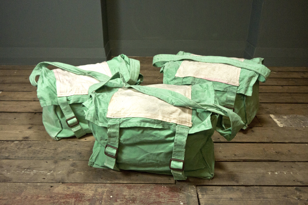 Lovely light green emergency rescue bags, with long shoulder strap and 2 buckle closings.