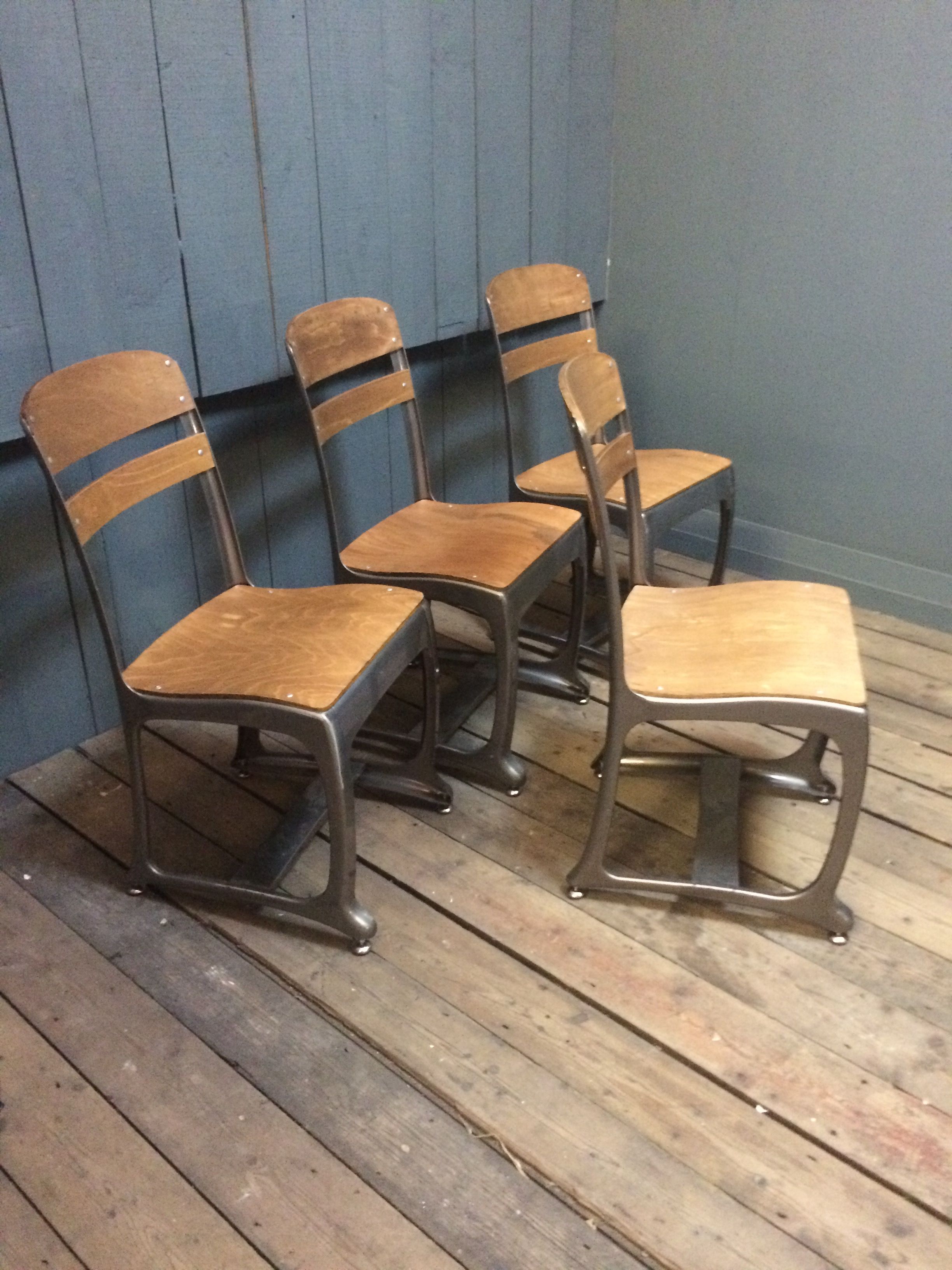 Moulded metal frame American style school chair with lovely wood seat and back slats.
