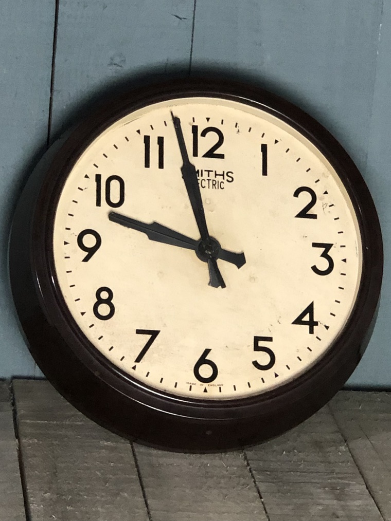 Super mottled brown Bakelite deep surround large wall clock by Smiths.