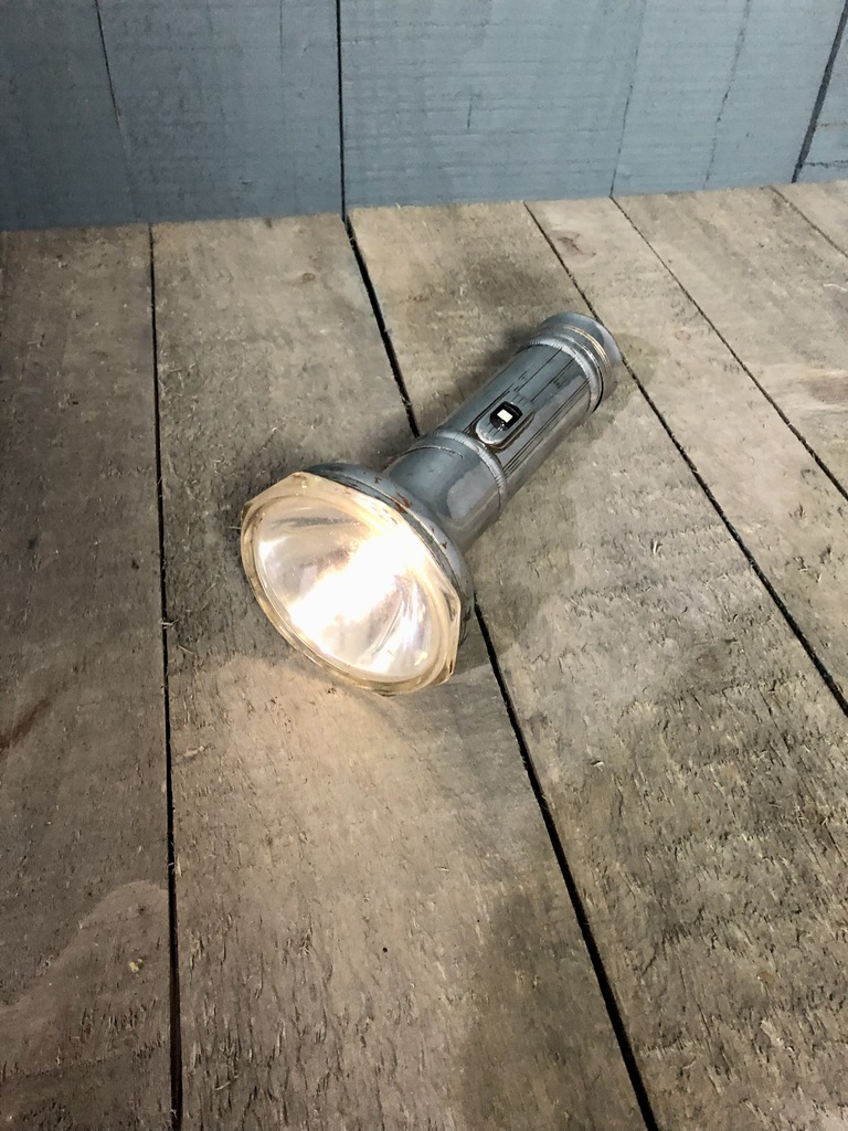 Smashing chrome flashlight, fully working. Ribbed body to hexagonal bulb head.