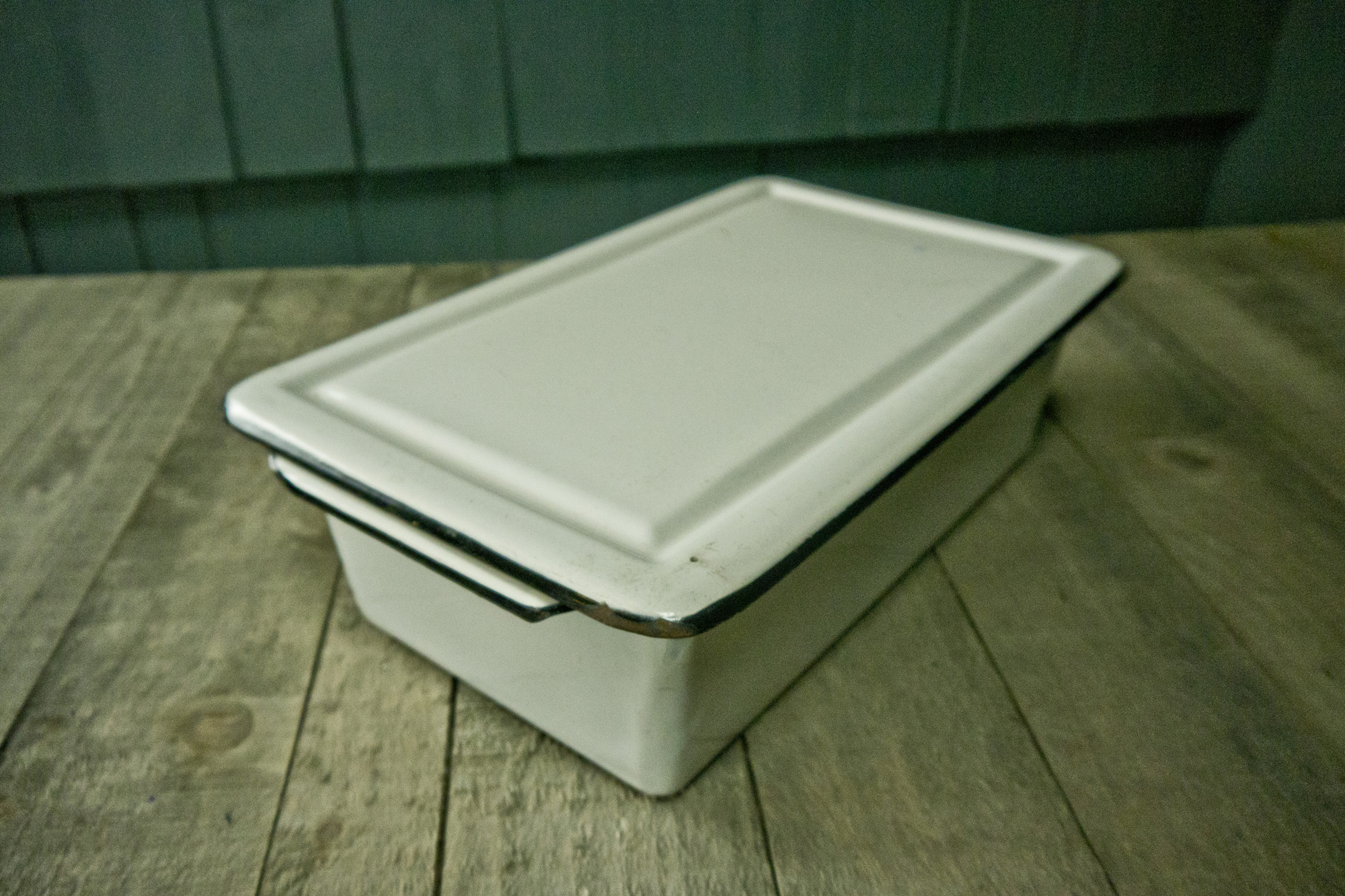 Lovely enamel rectangular steriliser pan with lid. Used in surgery as a simple alternative to a steriliser. It was a standard item in many hospitals.