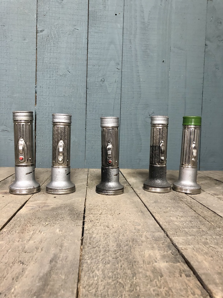 Great collection of matching hand torches with chrome ridged body to snub nose bulb.