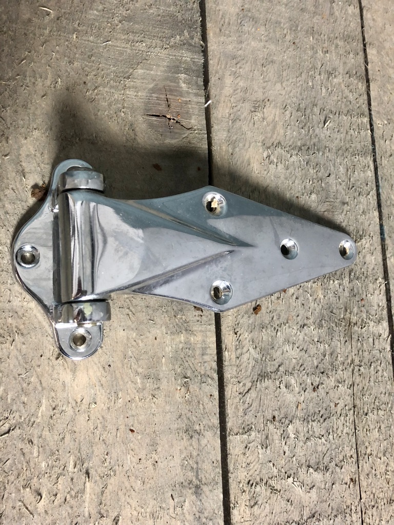 Chrome diamond shaped hinges found on mortuary body drawers.