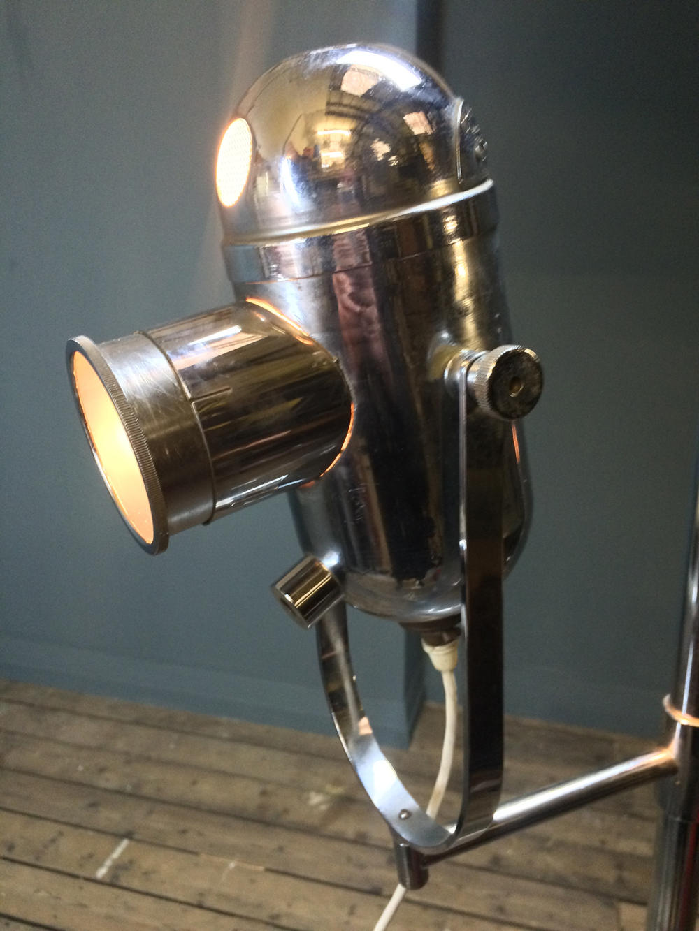 Stunningly curious chrome patient examination lamp on adjustable stand by Mayer & Co.