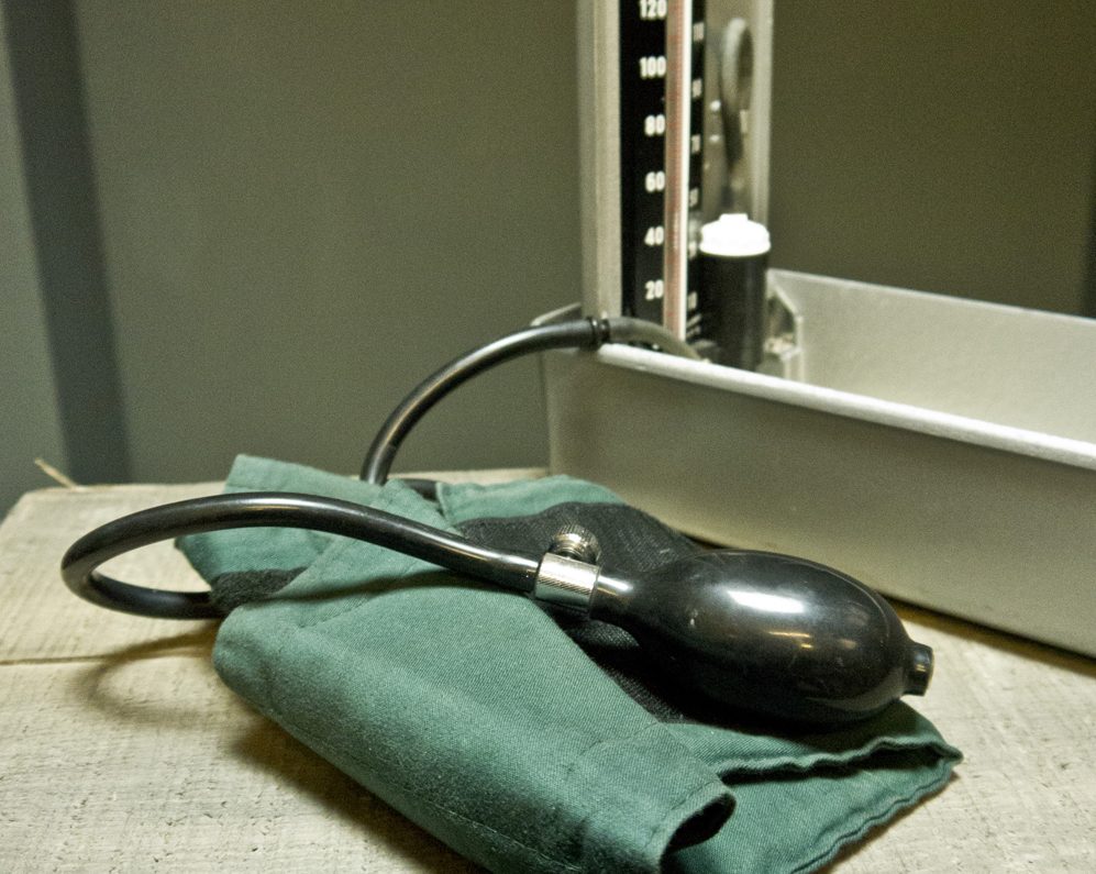 Metal cased blood pressure kit.