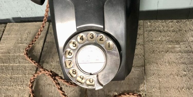 Smashing elongated black Bakelite wall mounted telephone, known as the “rams head” model.