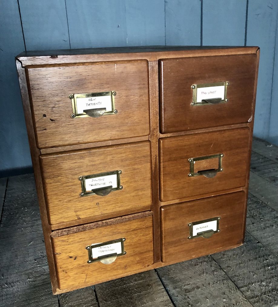 Super desktop index drawer unit with 6 fully functional drawers. All drawers have index windows and finger pulls in brass.